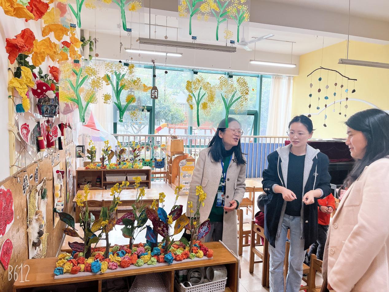随后,责任督学进入班级,观摩班级幼儿的游戏情况,与教师和幼儿进行对话,了解班级园本主题的开展情况,对教师充分利用自然资源,幼儿开展活动的丰富性肯于了肯定。